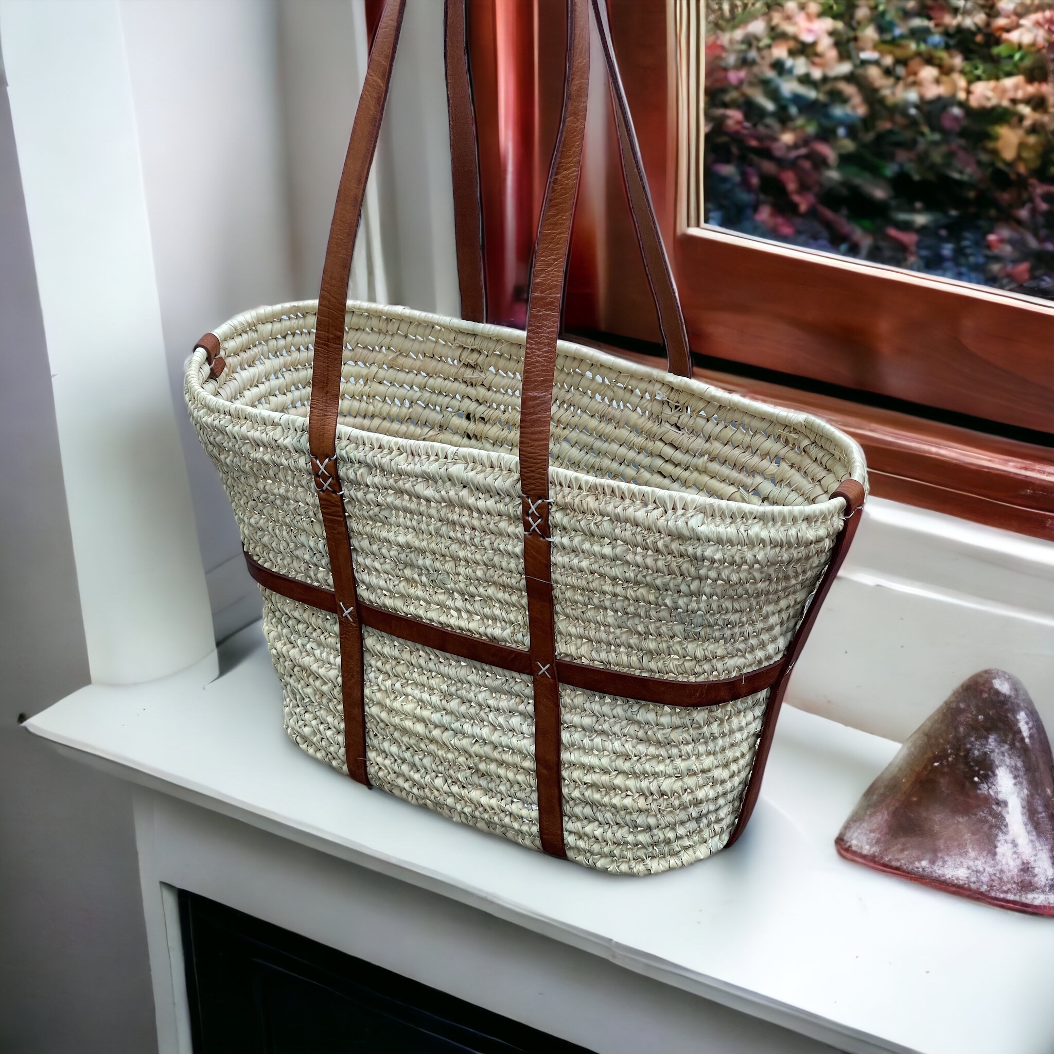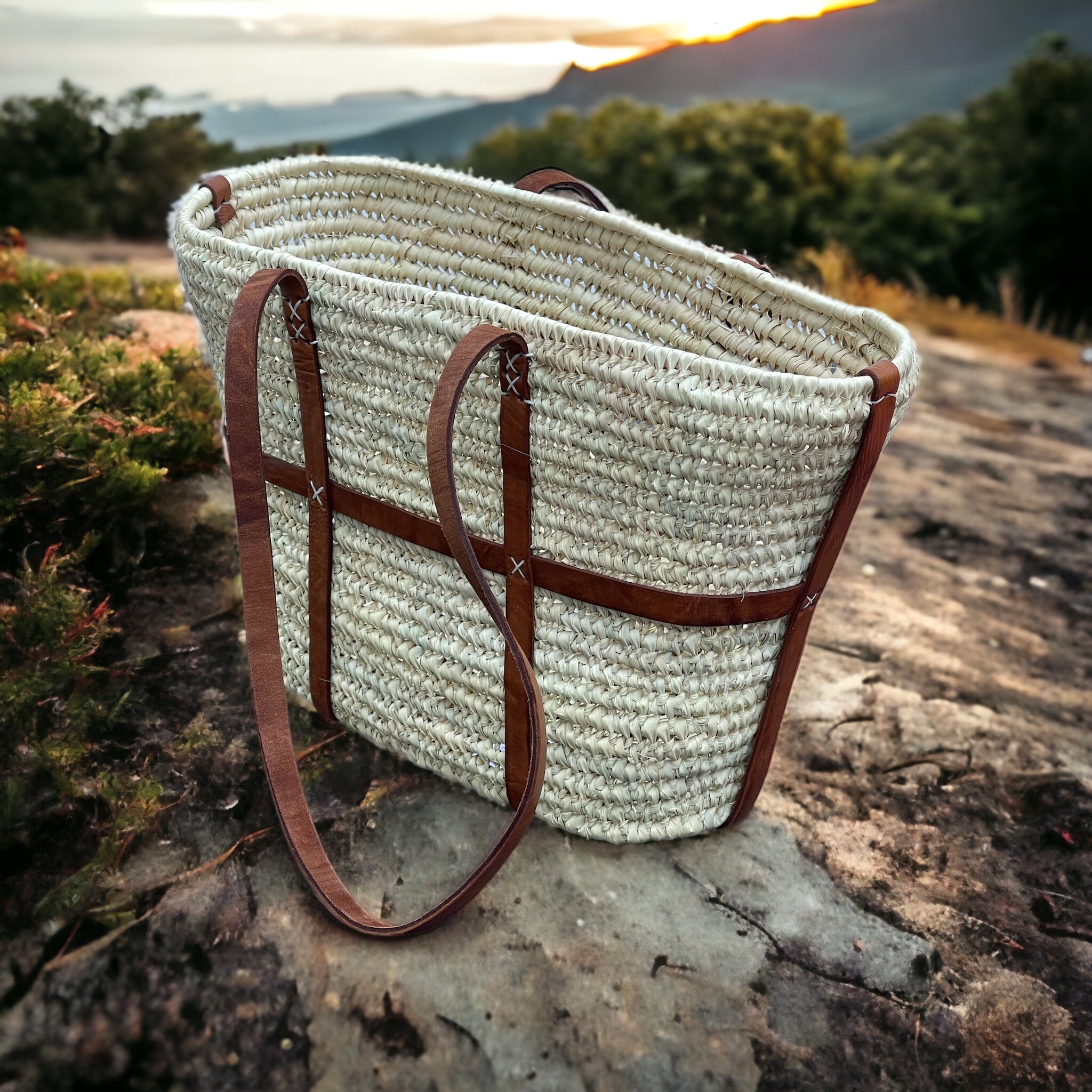 Echte Korbtasche mit Lederhenkel