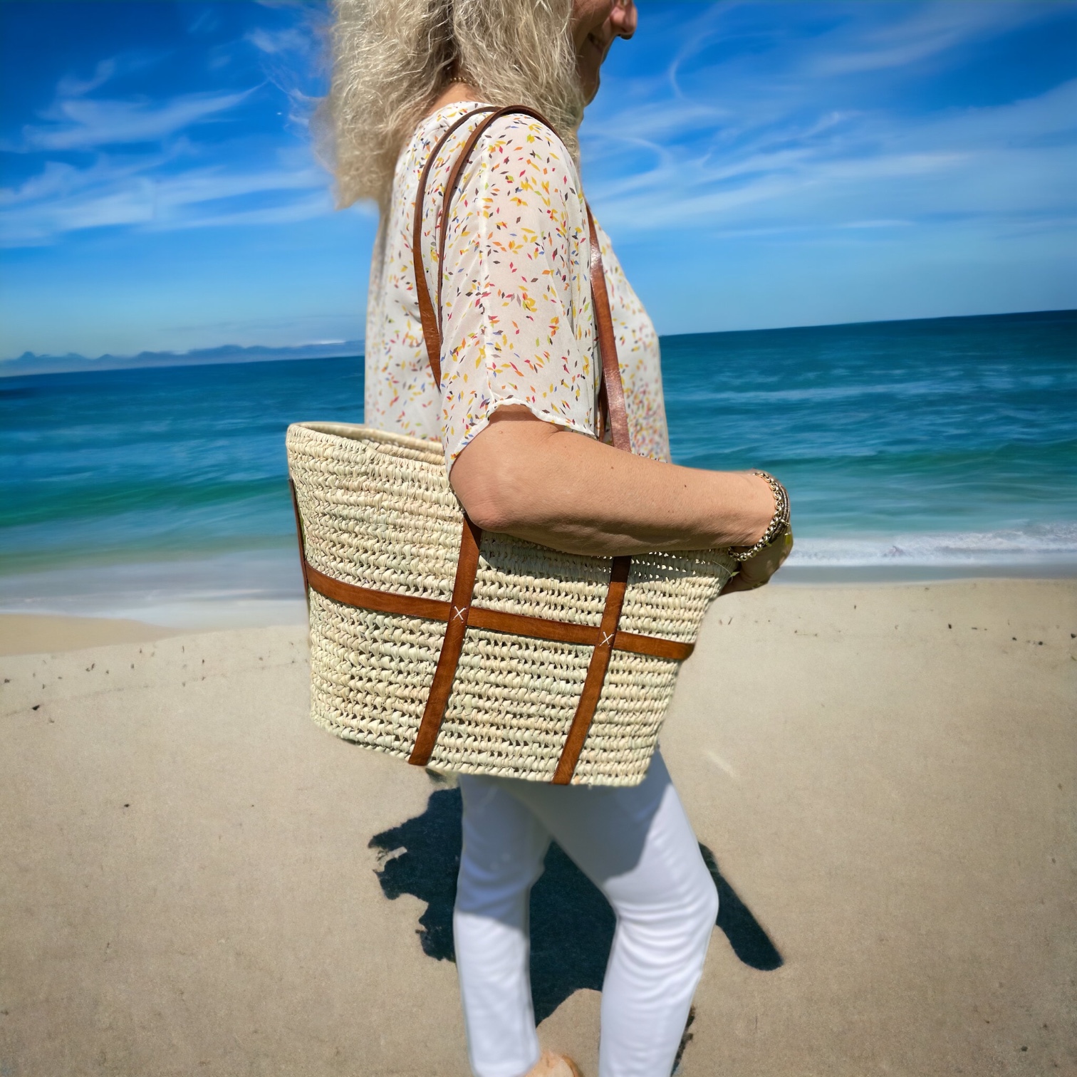 Hergestellt aus hochwertigen Materialien, verkörpert diese Korbtasche den authentischen Ibiza-Boho-Stil. Die Kombination aus dem natürlichen Charme der Palmblattfasern und den raffinierten Lederapplikationen verleiht ihr eine einzigartige Ausstrahlung.