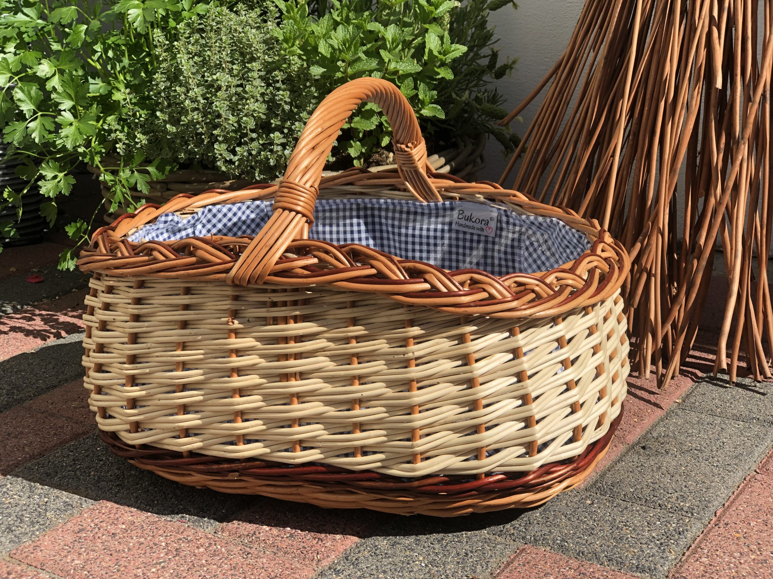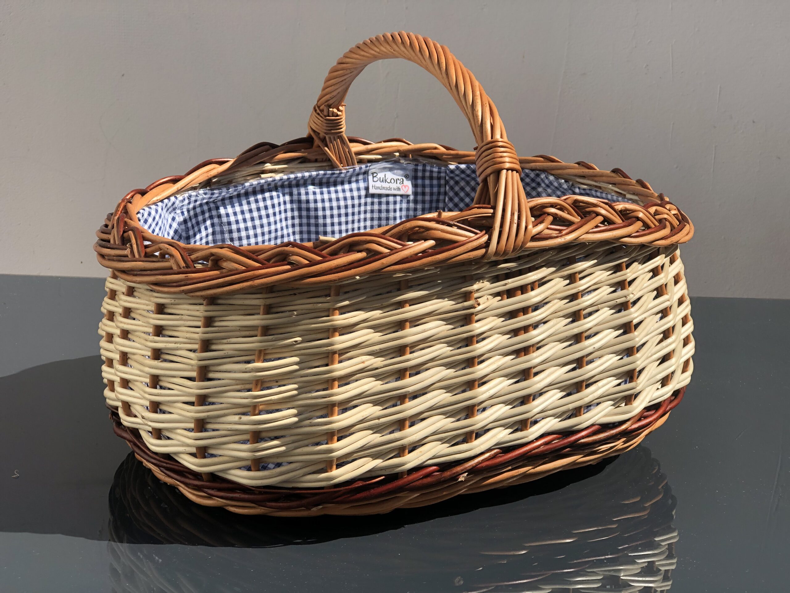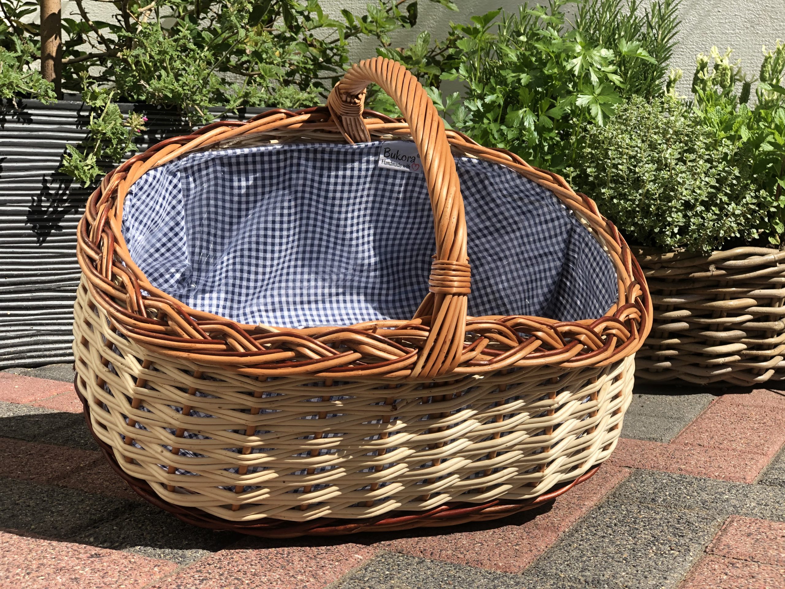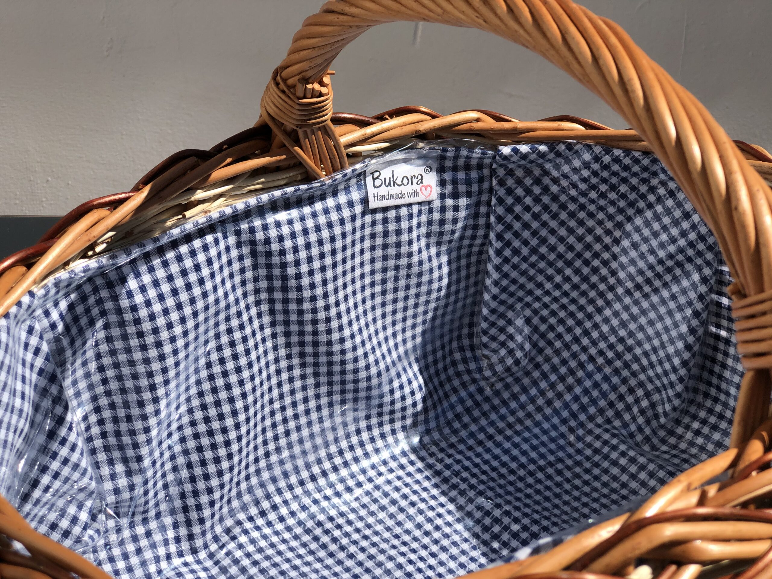 Bukora® Einkaufskorb aus gemischter Weide geflochten mit Futter Blau kariert