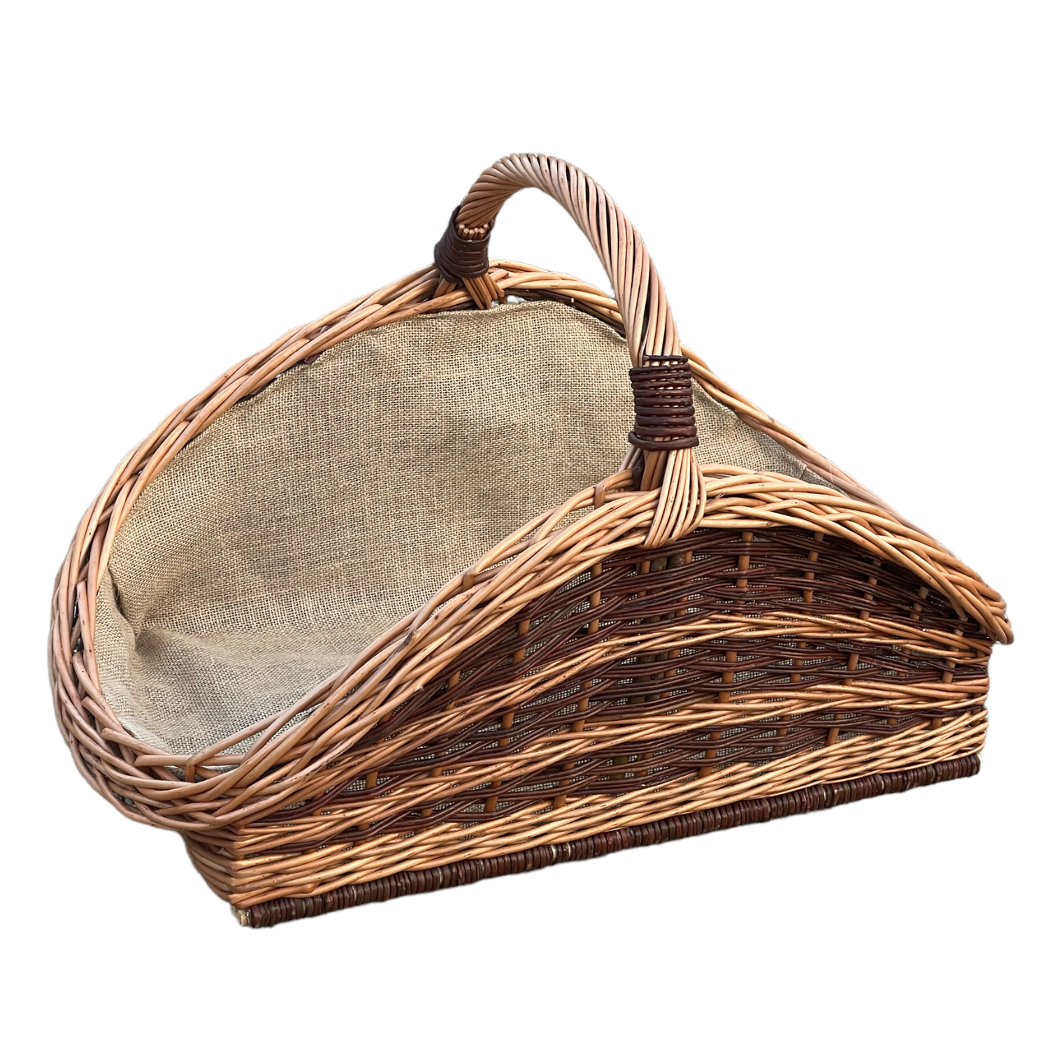 stabiler Holzkorb aus Weide geflochten und mit Jute garniert. Der ideale Helfer für ihren Ofen oder Feuerstelle. Die Juteeinlage verhindert ein herausrieseln des Holzstaubs und hält ihren Boden damit sauber. Die offenen Seiten ermöglichen ein leichtes beladen des Kaminholzkorbes und mittige Henkel ist angenehm im Handling.