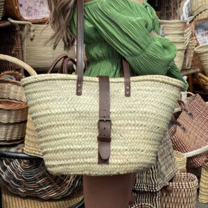 Bukora® Ibiza Korbtasche verschließbar mit dunkler Lederschnalle und langen Lederhenkel