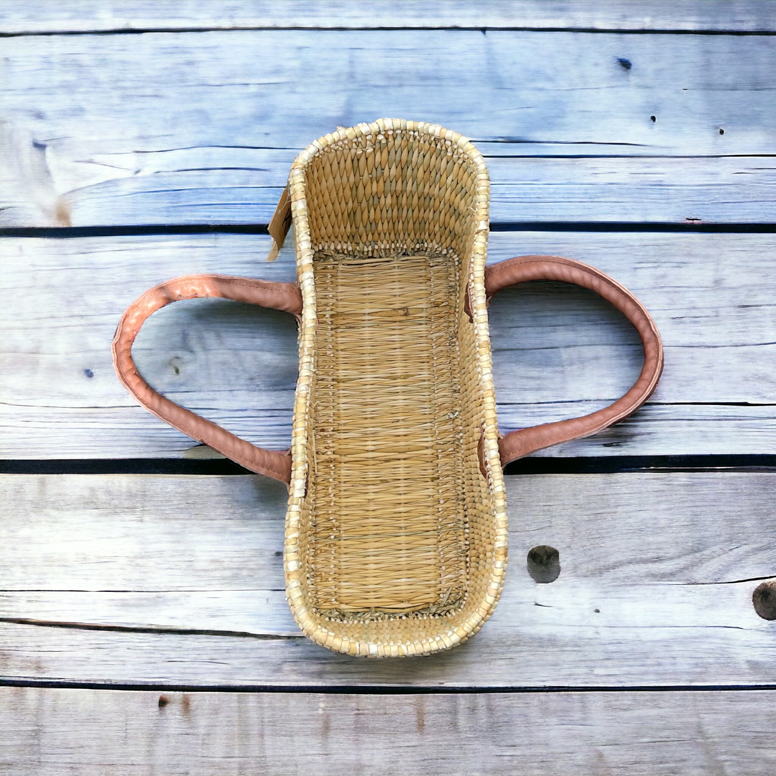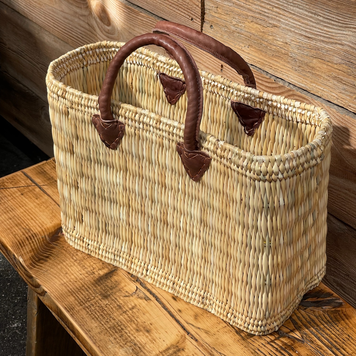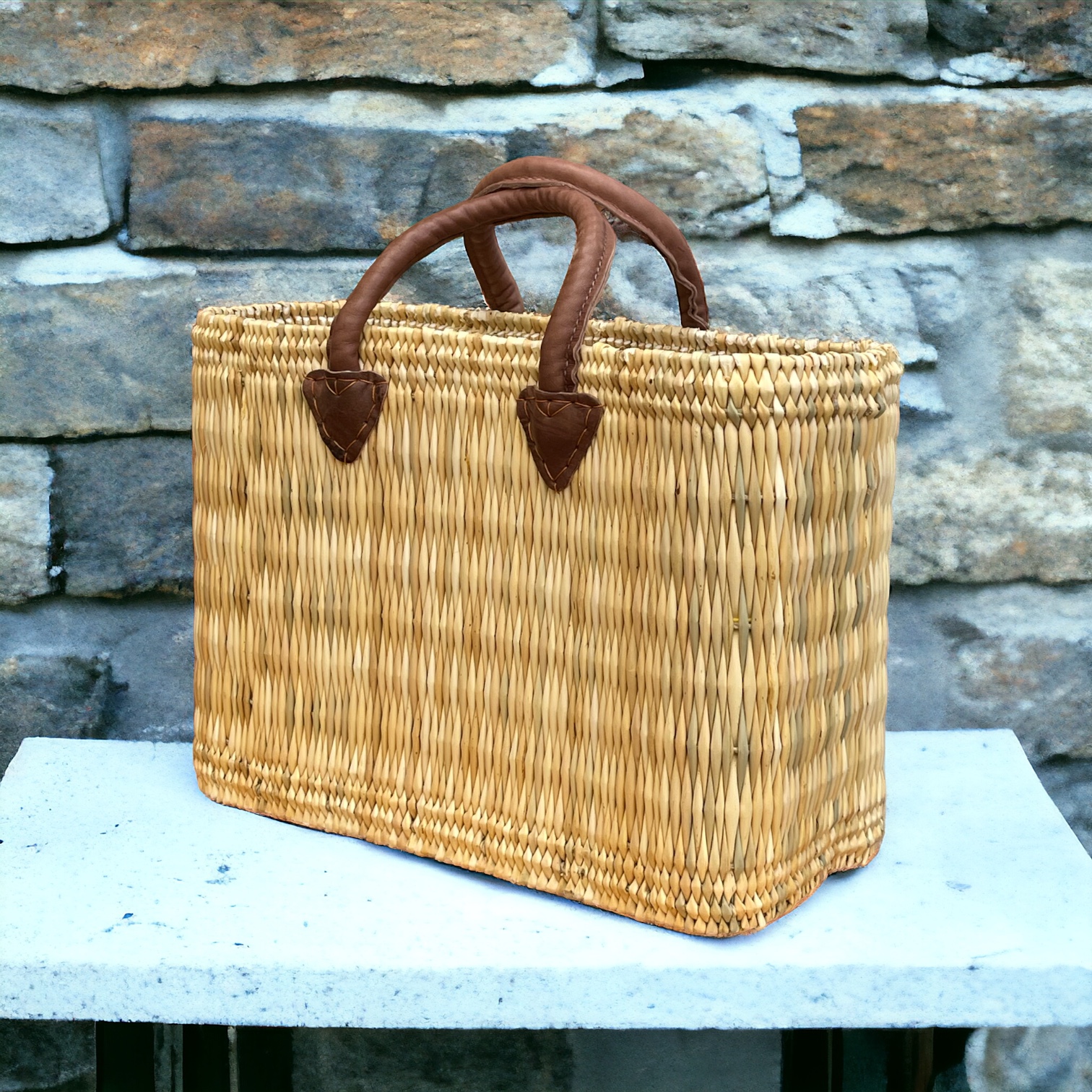 Bukora® Korbtasche mit Ledergriffen und rechteckig, Echte Handarbeit