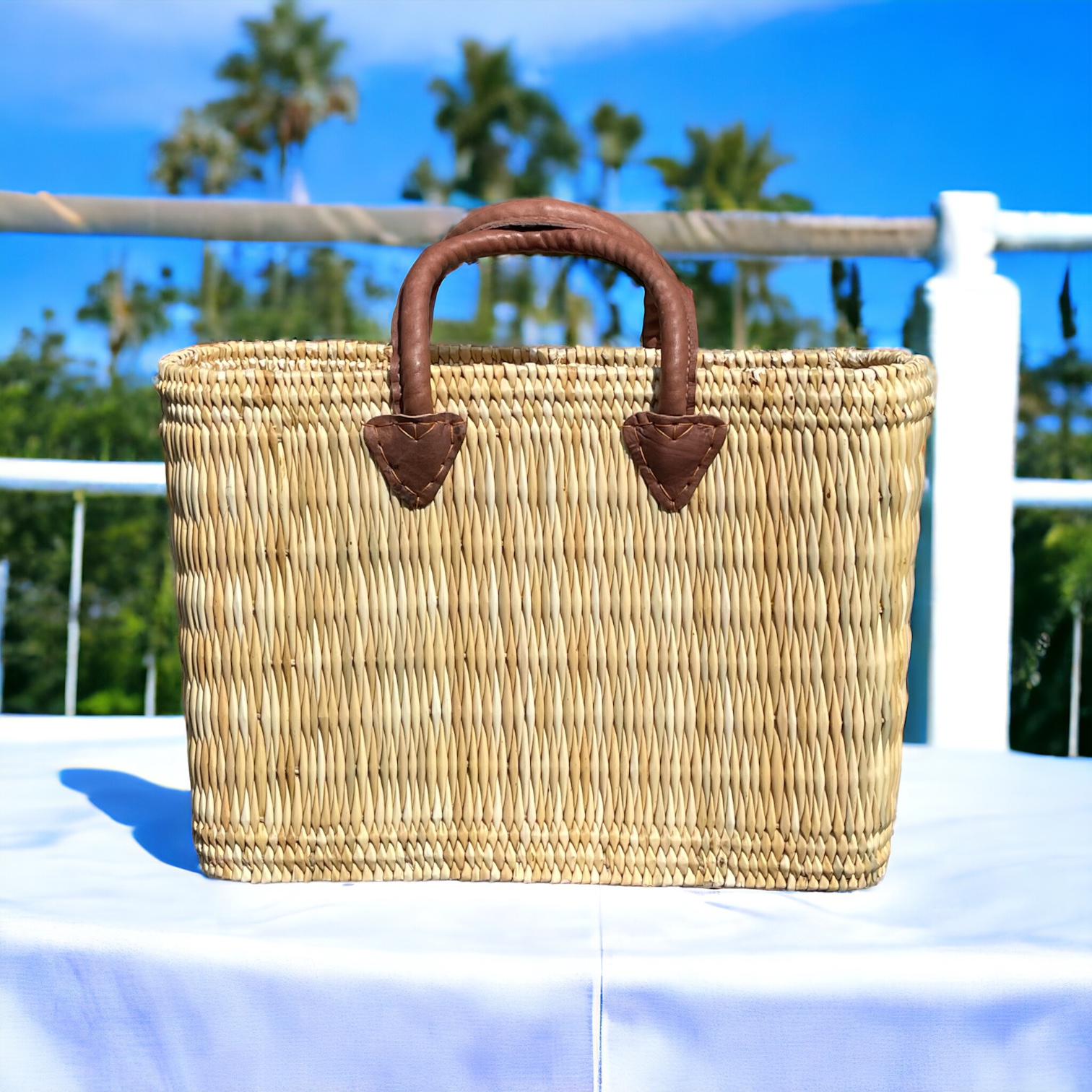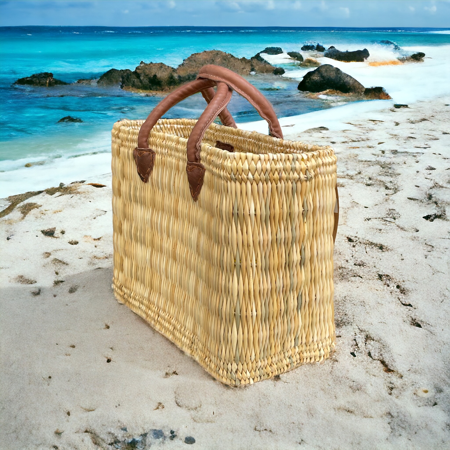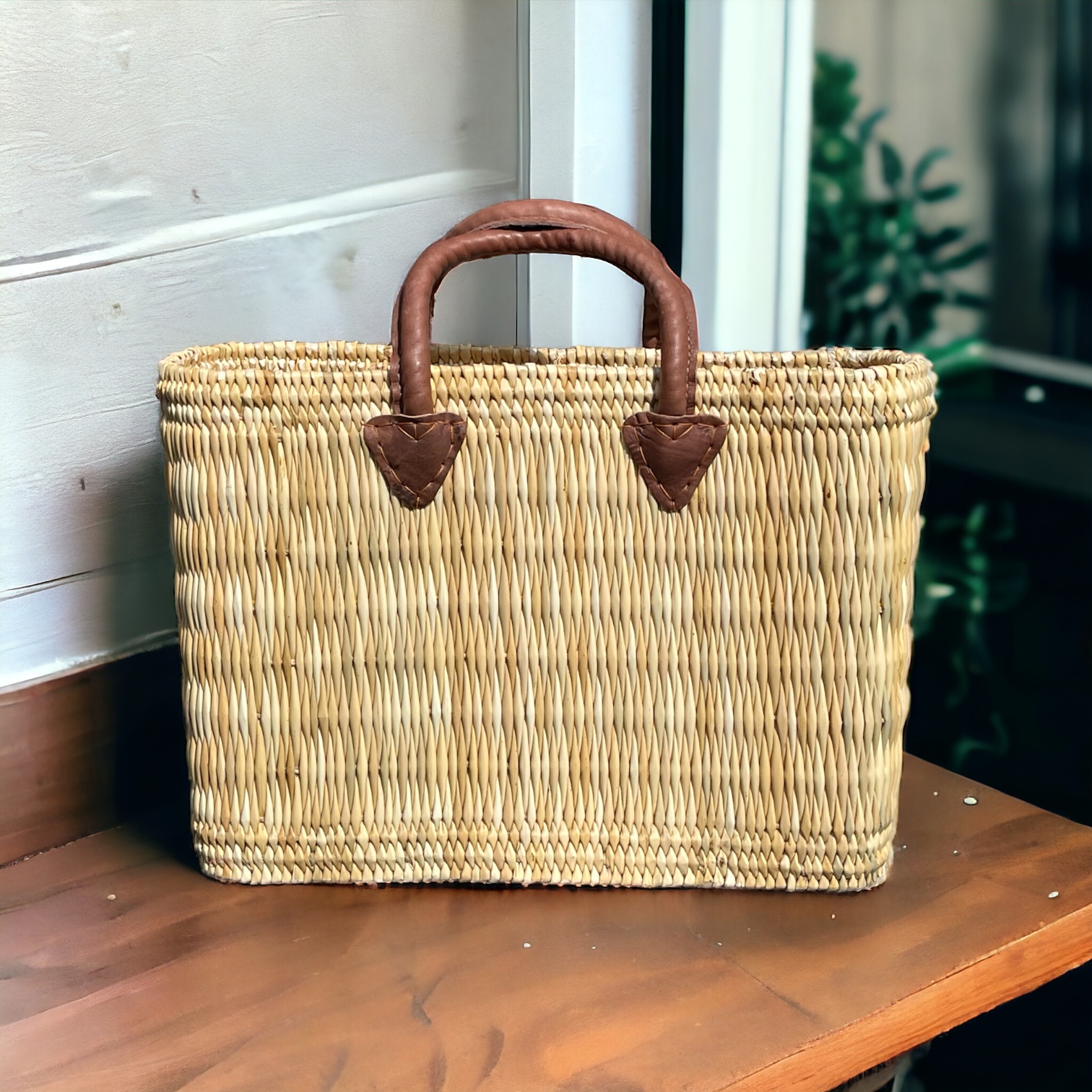 Bukora® Korbtasche mit Ledergriffen und rechteckig, Echte Handarbeit