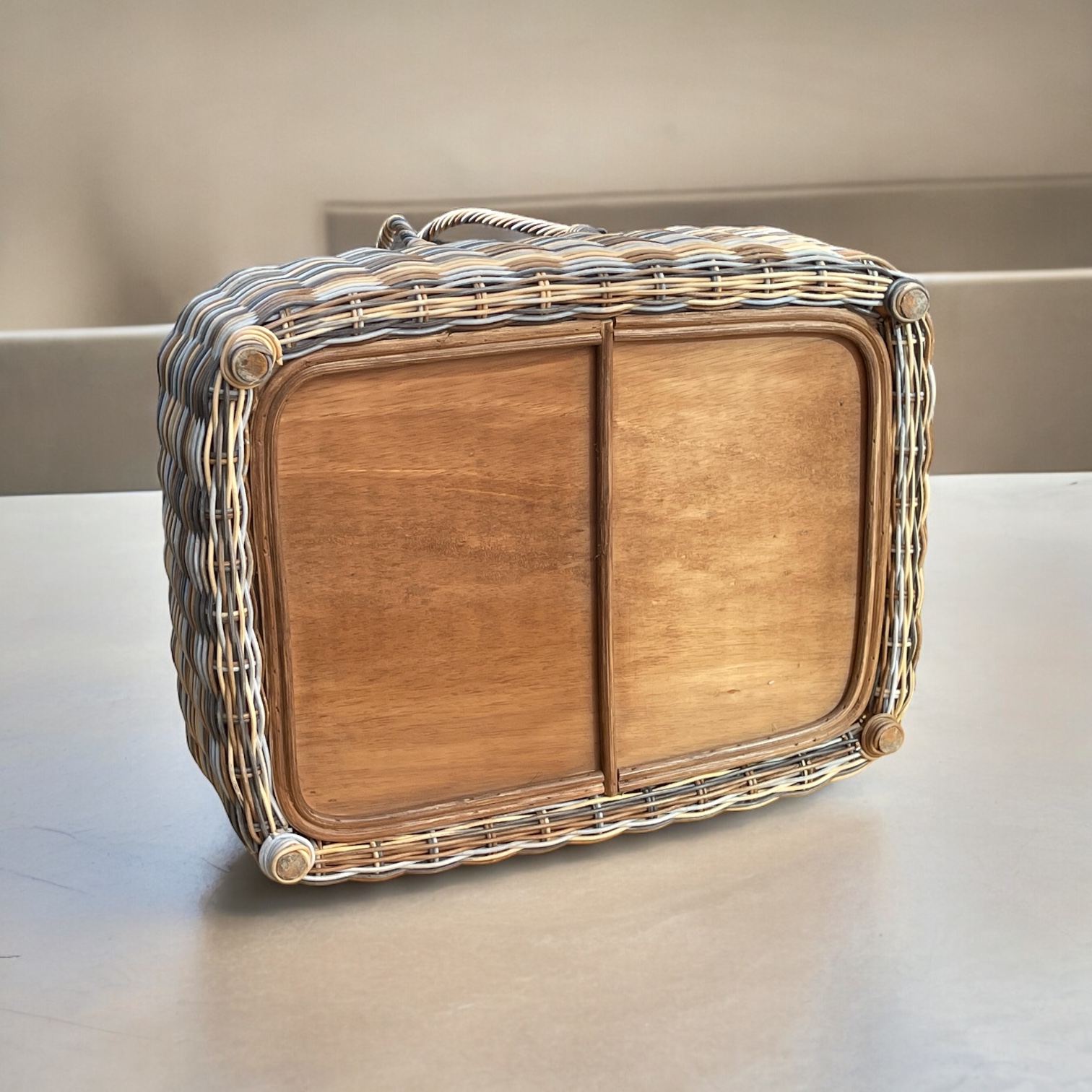 Bukora® Korbtablett aus heller Weide mit 2 Griffen und fein kariertem Stoffeinsatz in Olive-Grau