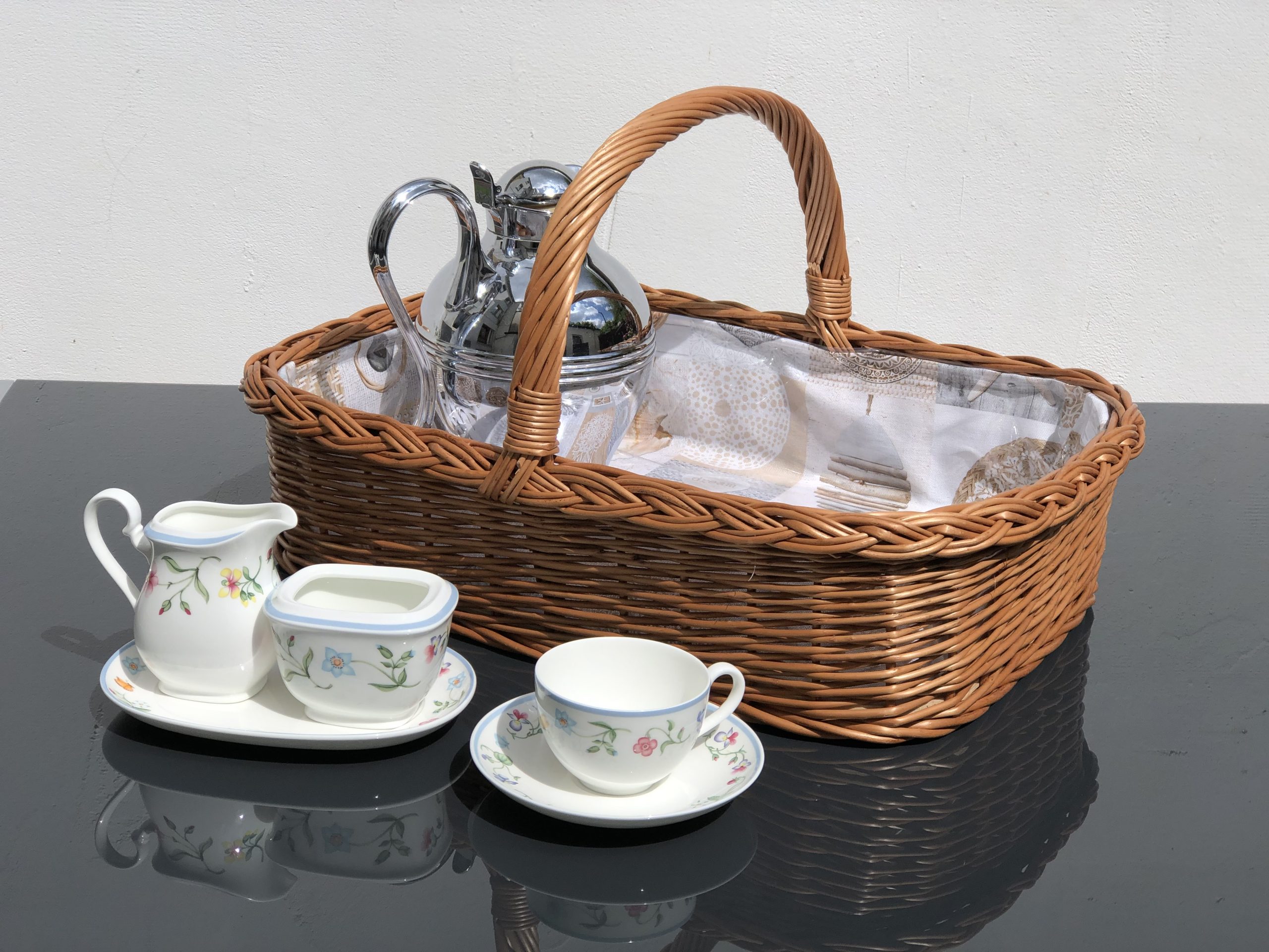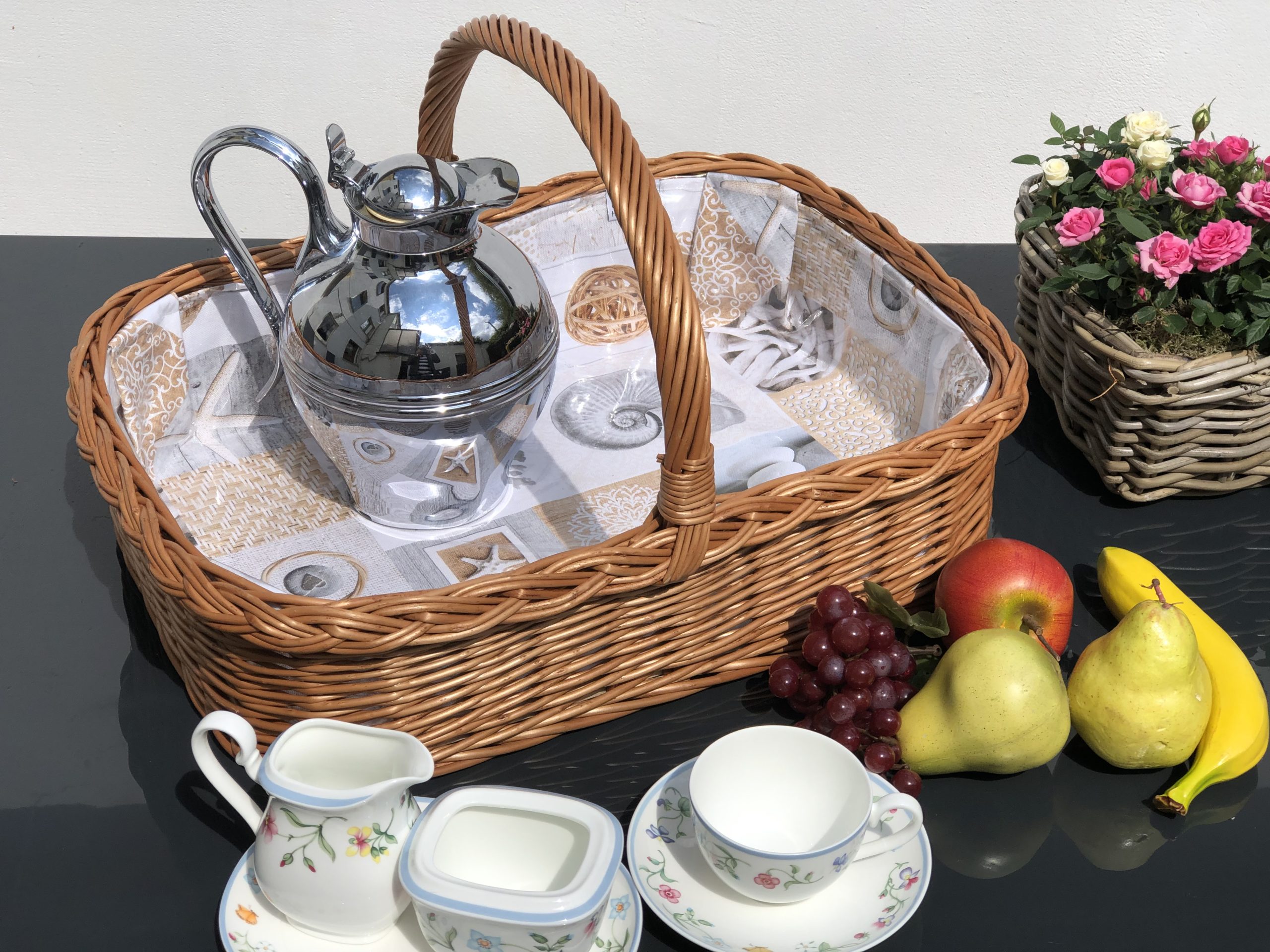 - Tablett aus Weide geflochten mit Futter garniert