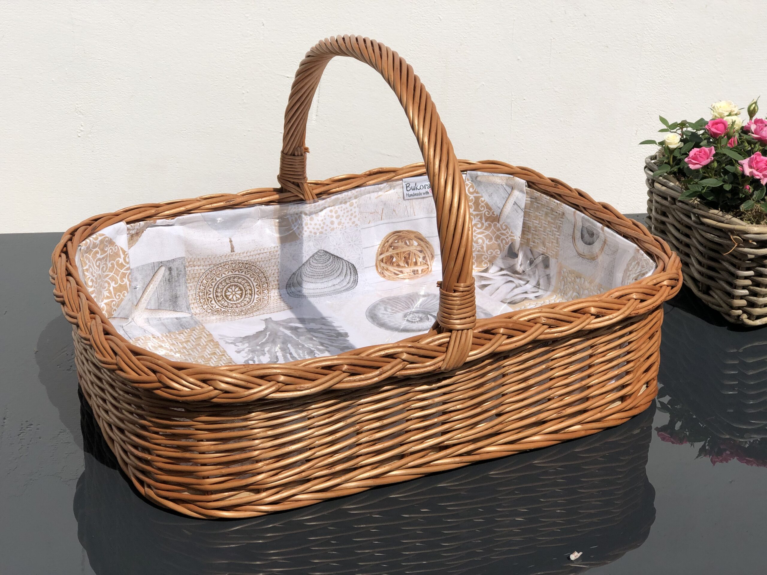 Bukora® Tablett aus Weide mit maritimem Futter Beige