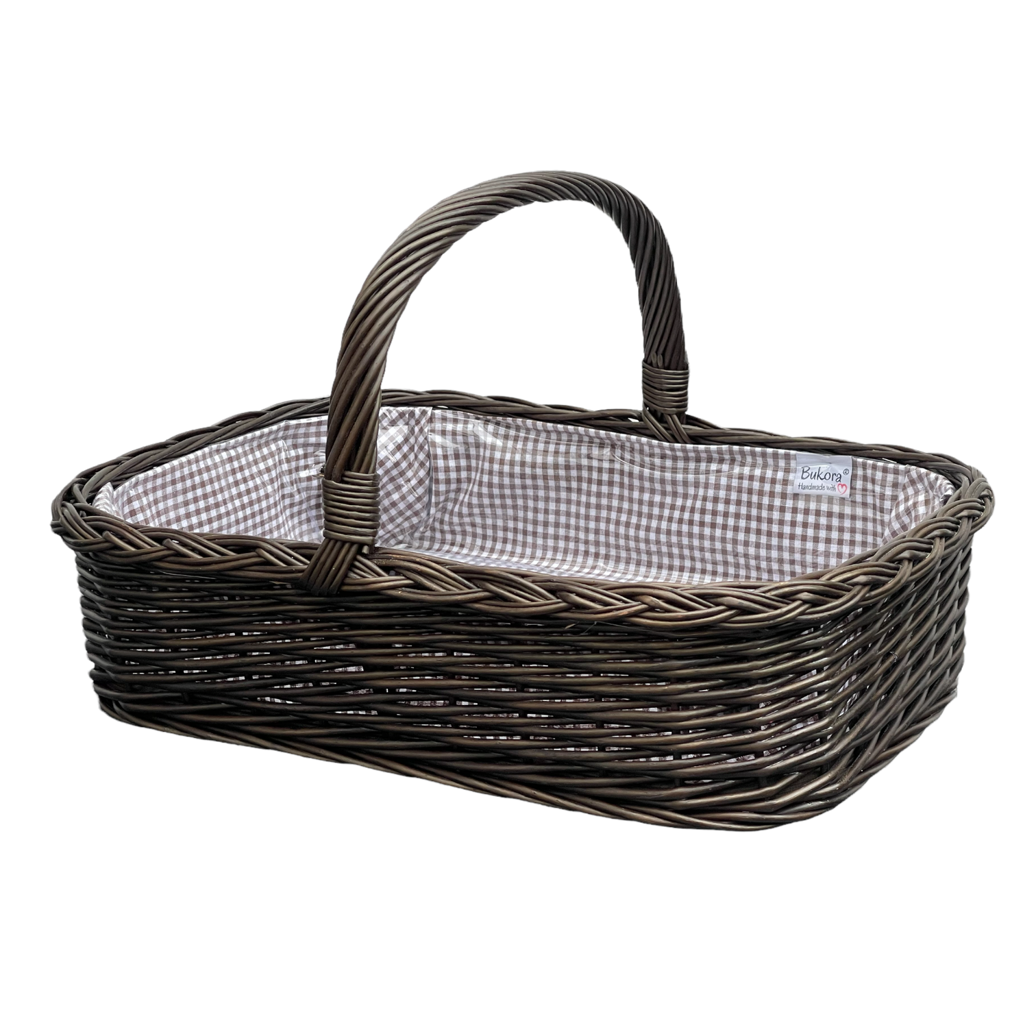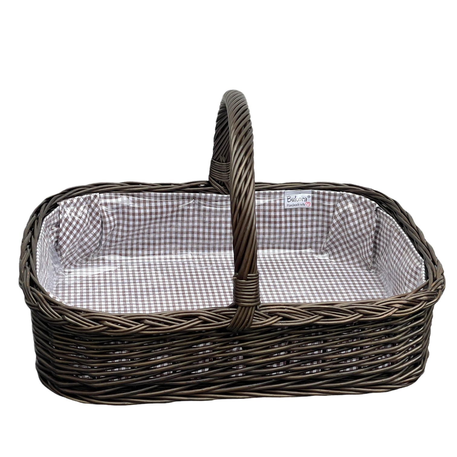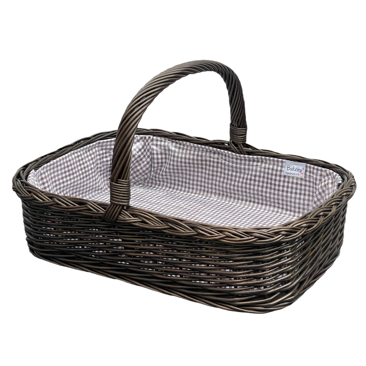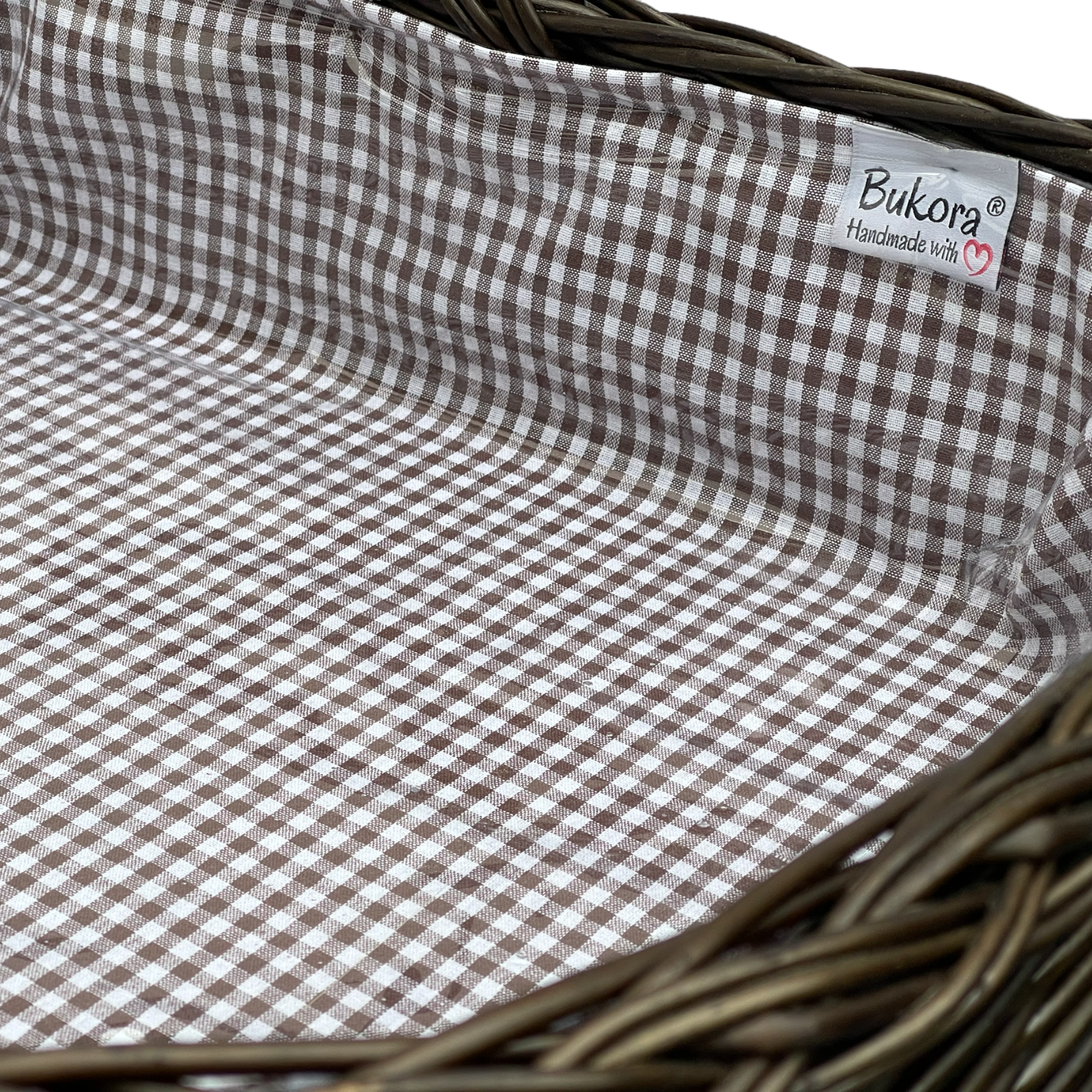 Bukora® Korbtablett in Braun gebeizter Weide mit Futter Braun fein kariert