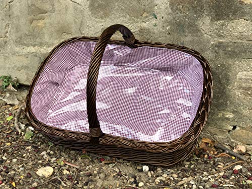 Stabiles Weidentablett mit Henkel und Futter garniert. Das Tablett ist aus gesottener Weide geflochten und ist hervorragend verarbeitet.