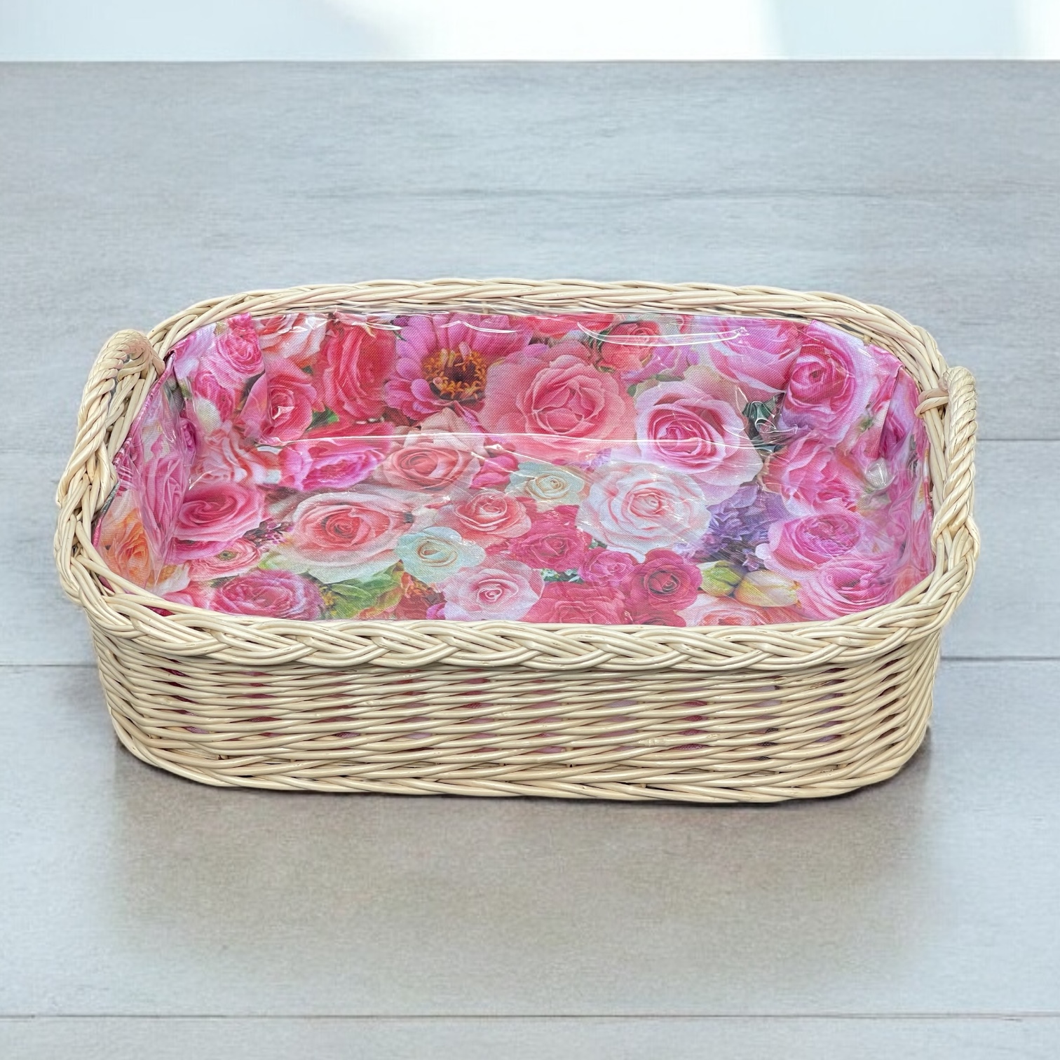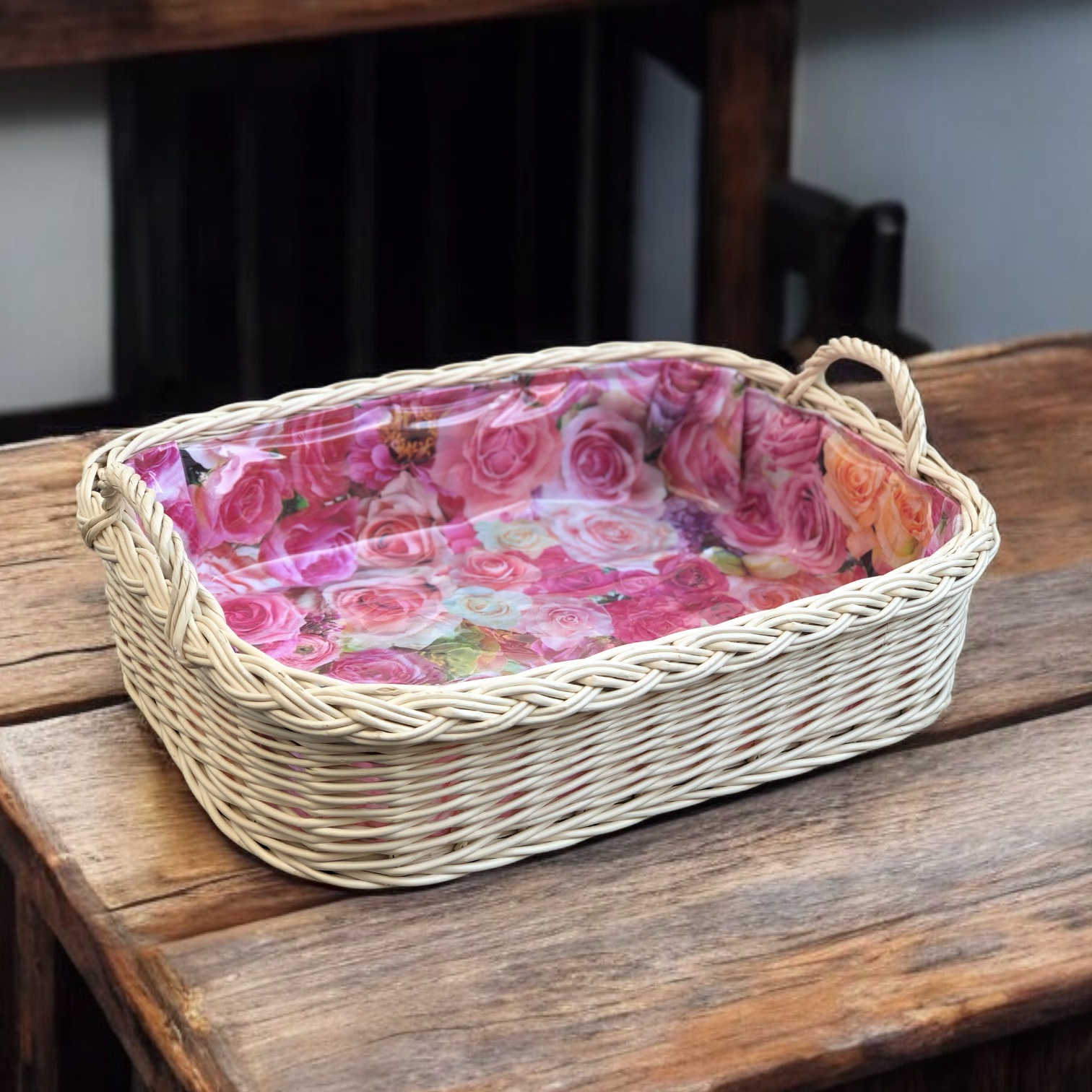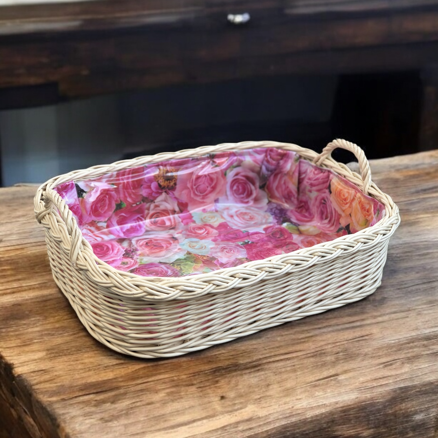 Bukora® Tablett aus Weide mit Futter Rosenmuster