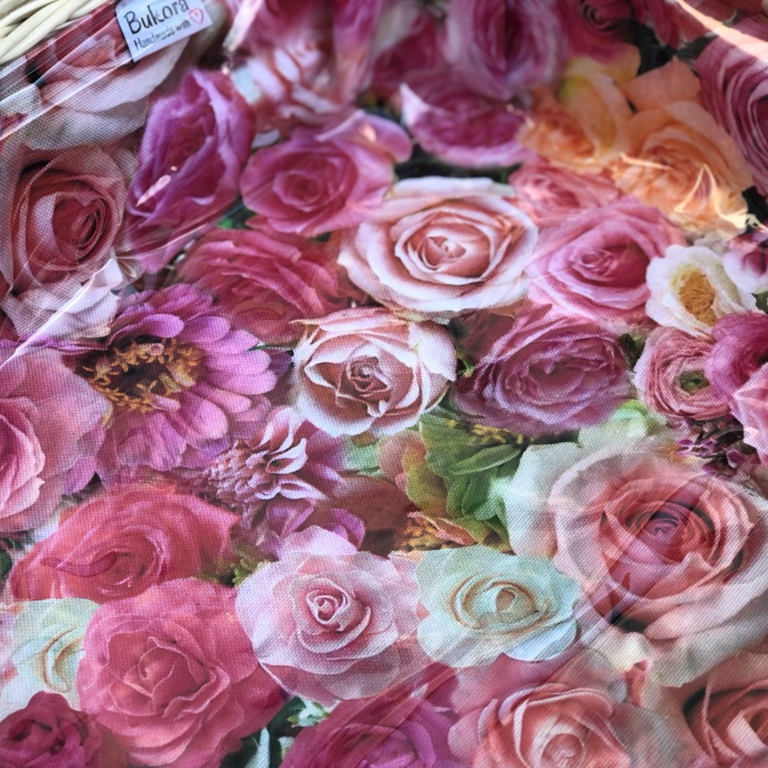 Bukora® Einkaufskorb aus Weide extra stabil mit Futter Rosenmuster