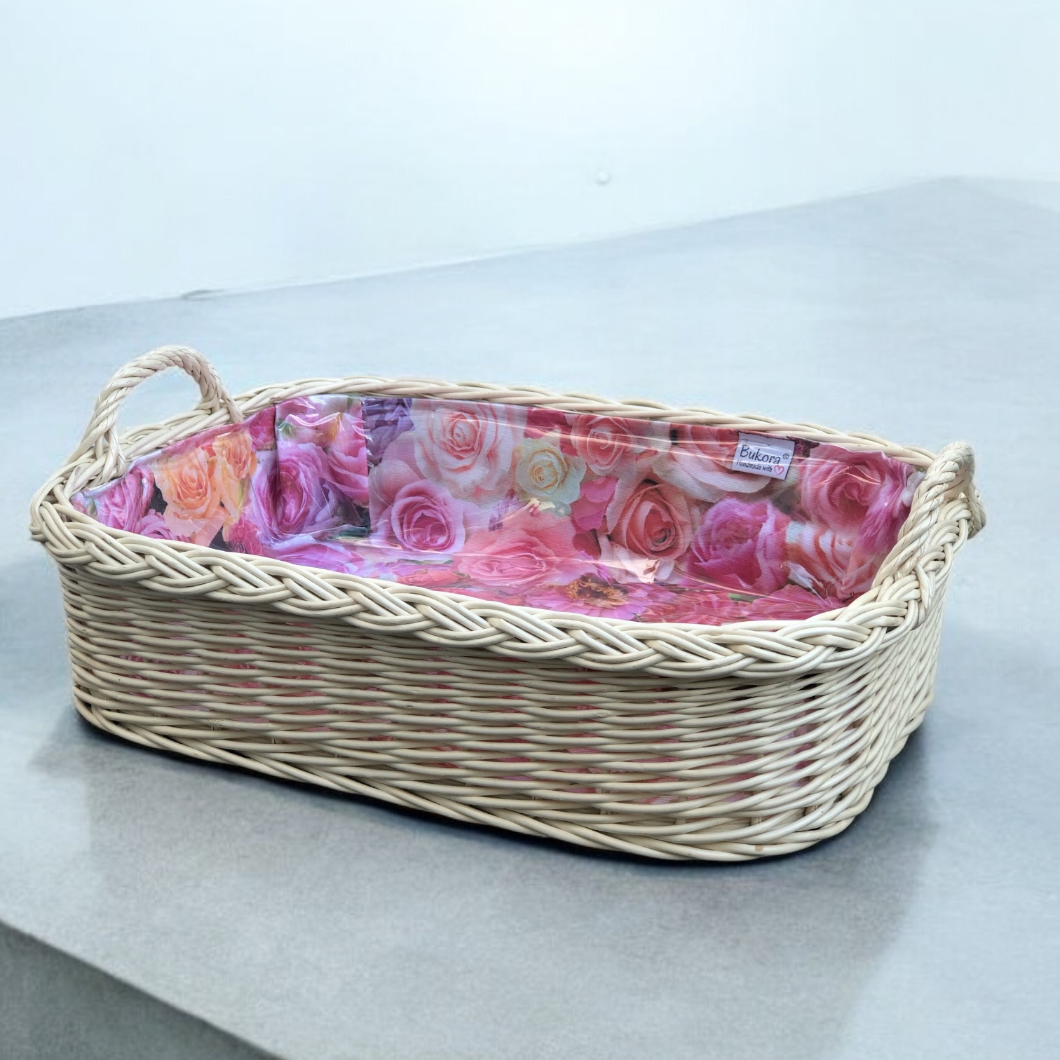 Bukora® Tablett aus Heller Weide mit Futter Rosenmuster