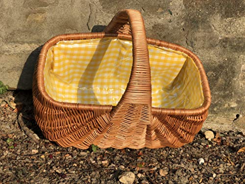 Bukora® Einkaufskorb aus Weide Extra Stabil, Futter Gelb Kariert
