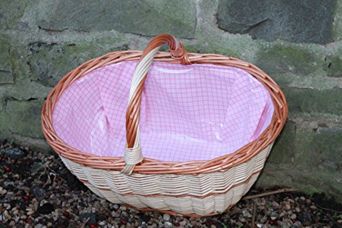 Bukora® Einkaufskorb aus gemischter Weide extra stabil, Futter Rosa kariert