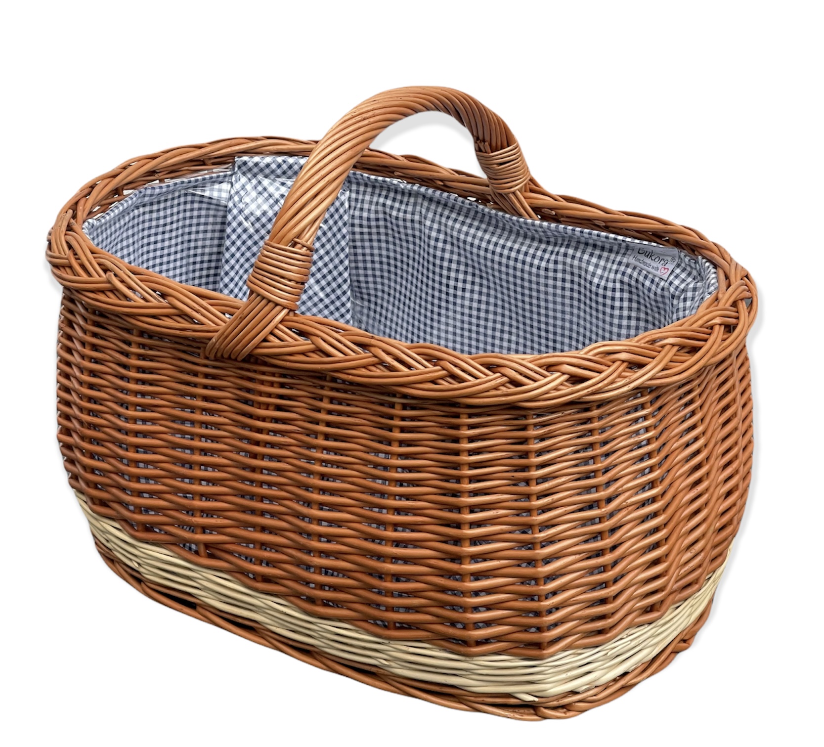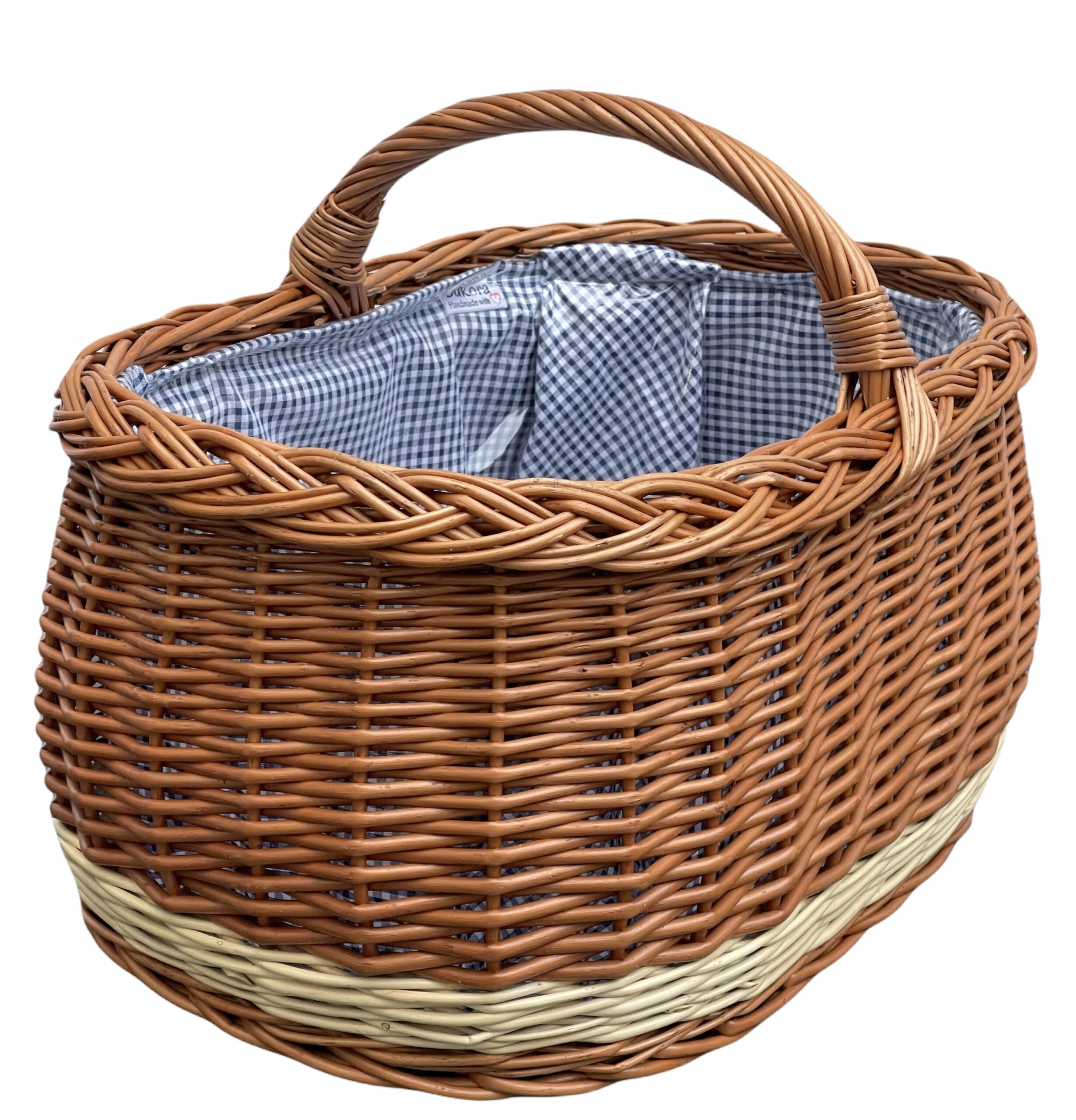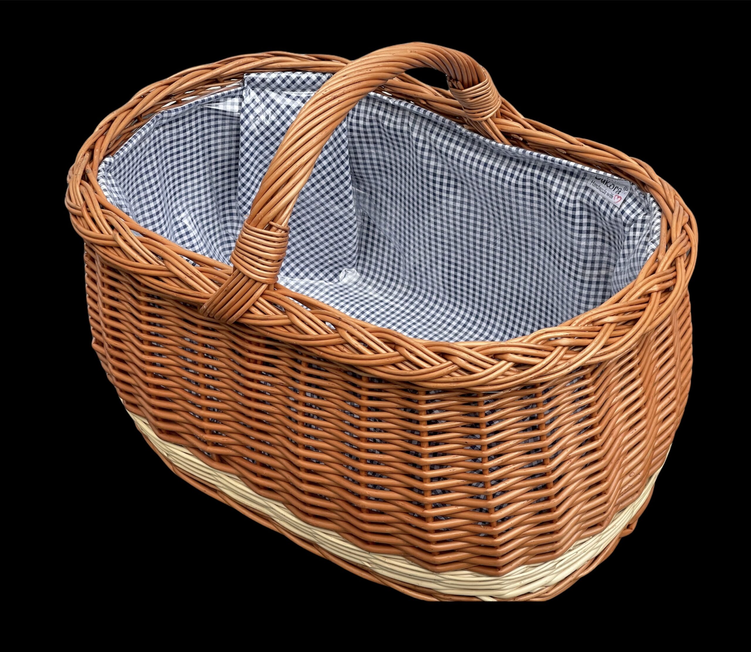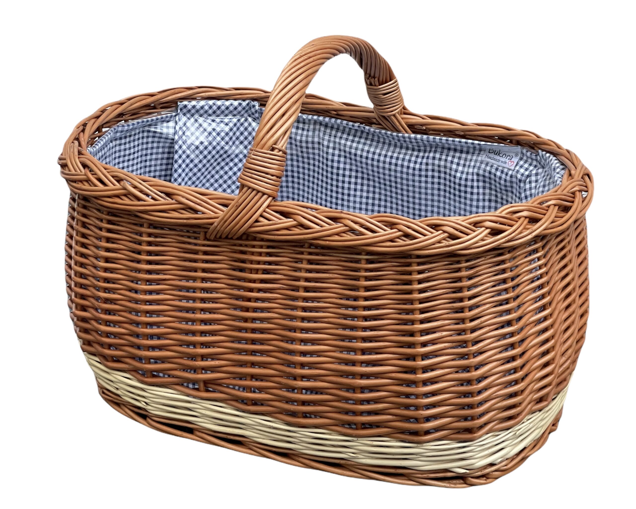 Einkaufskorb aus Weide extra stabil, Futter Blau kariert " Autokorb "