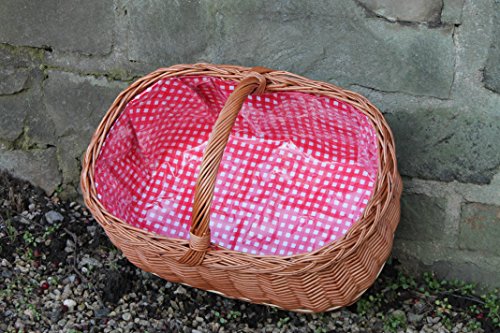 Bukora® Einkaufskorb aus Weide extra stabil, Futter Rot Weiß kariert.. Autokorb mit flachem Boden