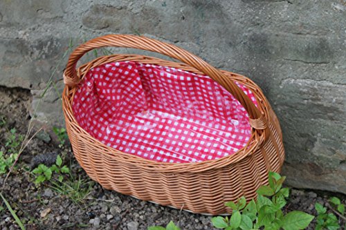 Einkaufskorb aus Weide extra stabil, mit Längsgriff…garniert in Rot Weiß