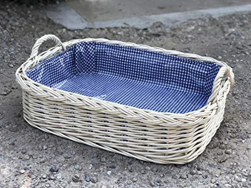 Bukora® Tablett aus heller Weide mit Futter Blau kariert 2 Griffe
