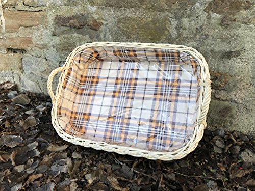 Tablett aus heller Weide mit Futter Braun Groß kariert" 2 Griffe"