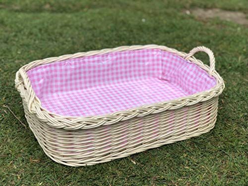 Tablett aus heller Weide mit Futter Rosa kariert" 2 Griffe"
