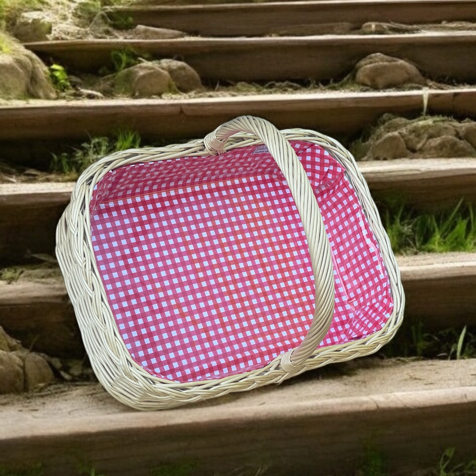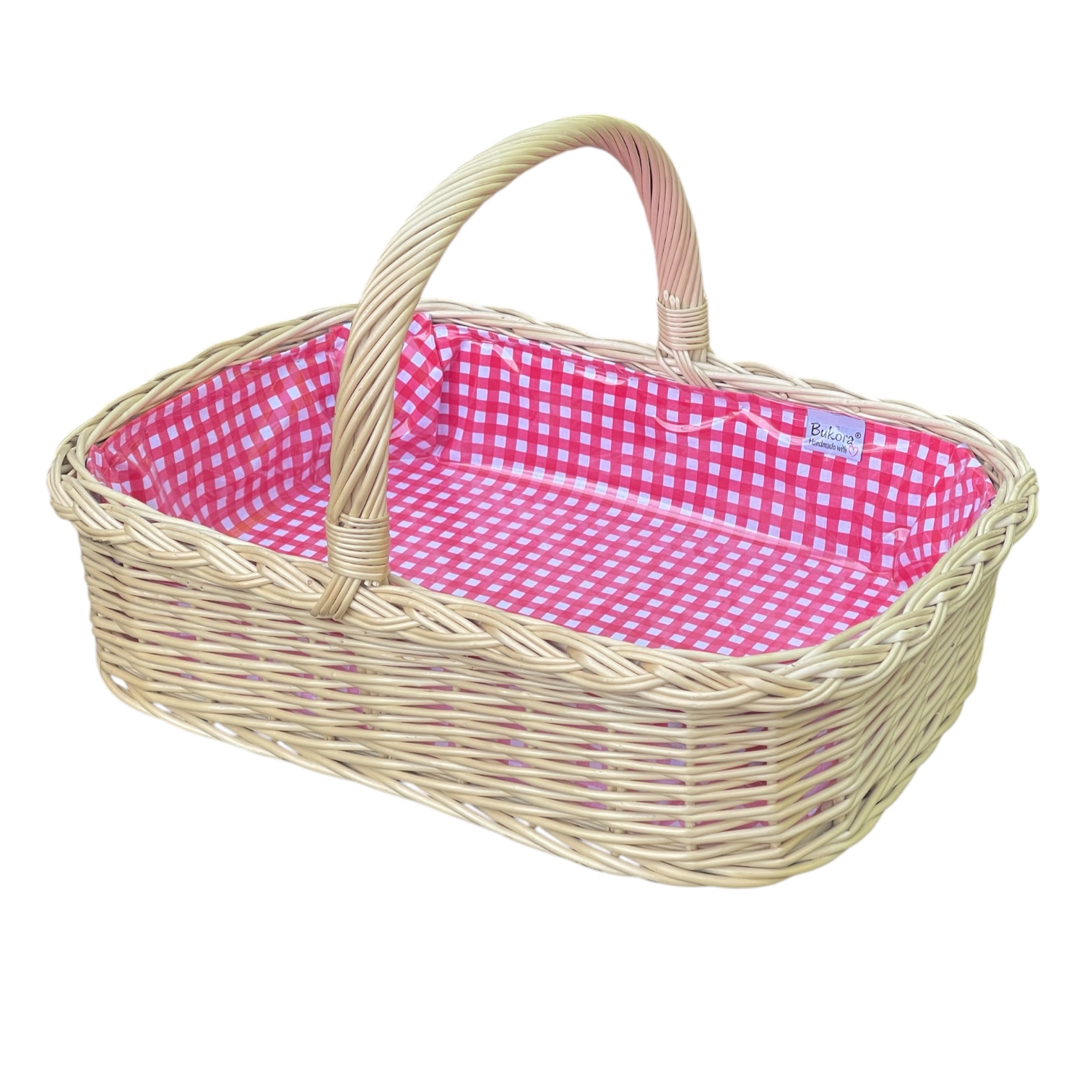Bukora® Korbtablett aus heller Weide mit Futter Rot Weiß kariert
