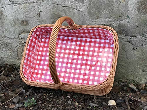 Tablett aus Weide garniert Rot Weiß groß kariert