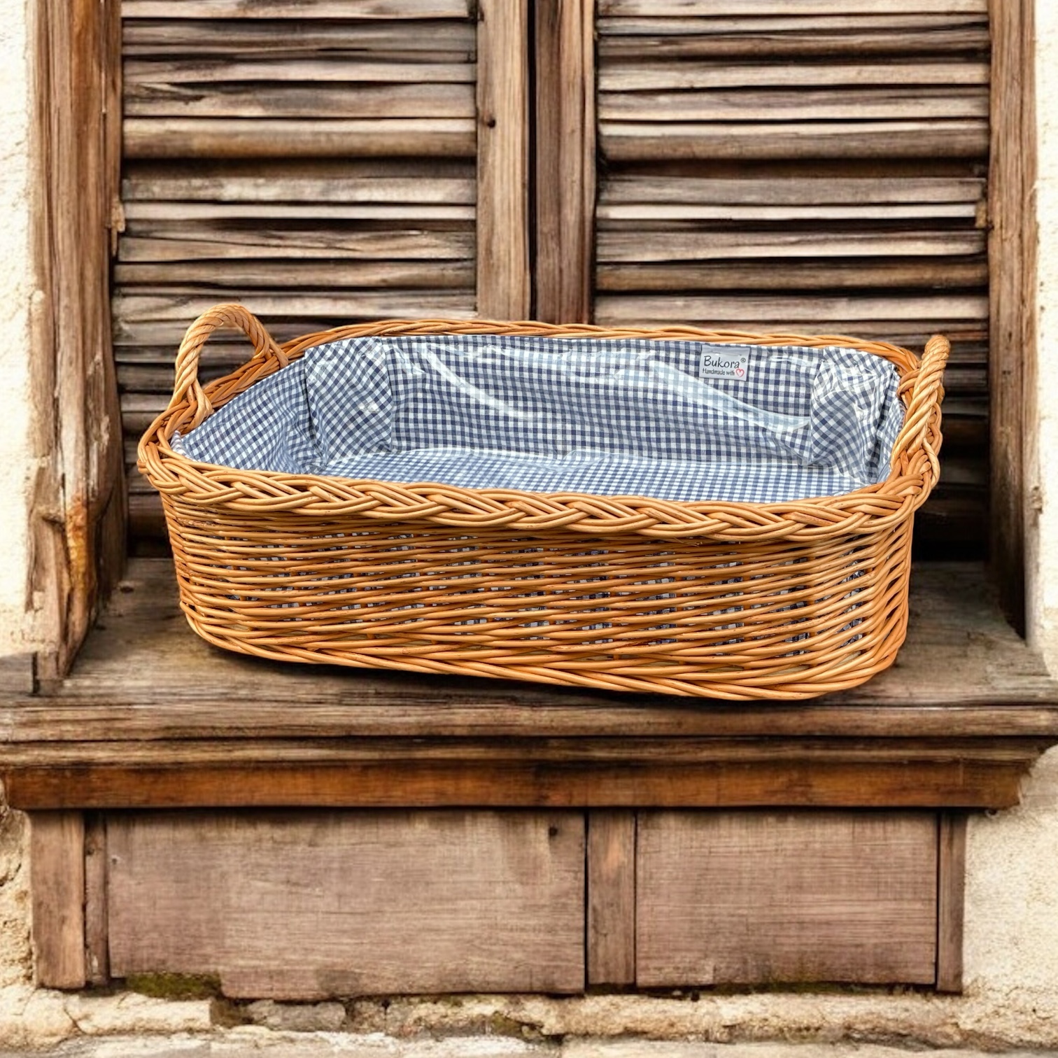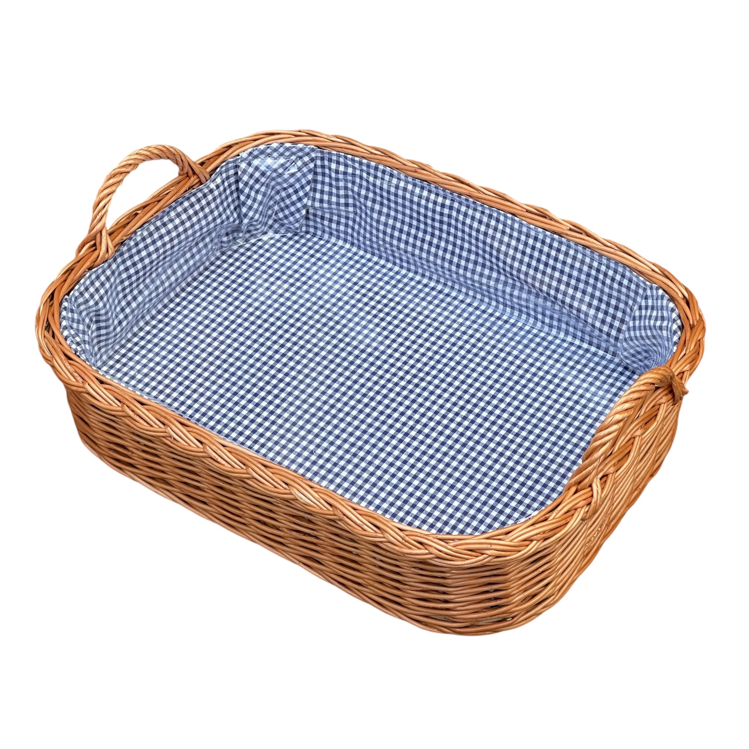 Bukora® Tablett aus Weide mit Futter Blau fein kariert mit 2 Griffen …