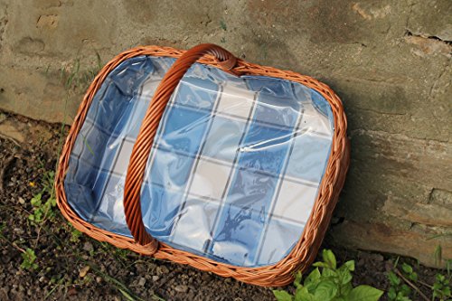 Tablett aus Weide mit Futter Blau Neu kariert