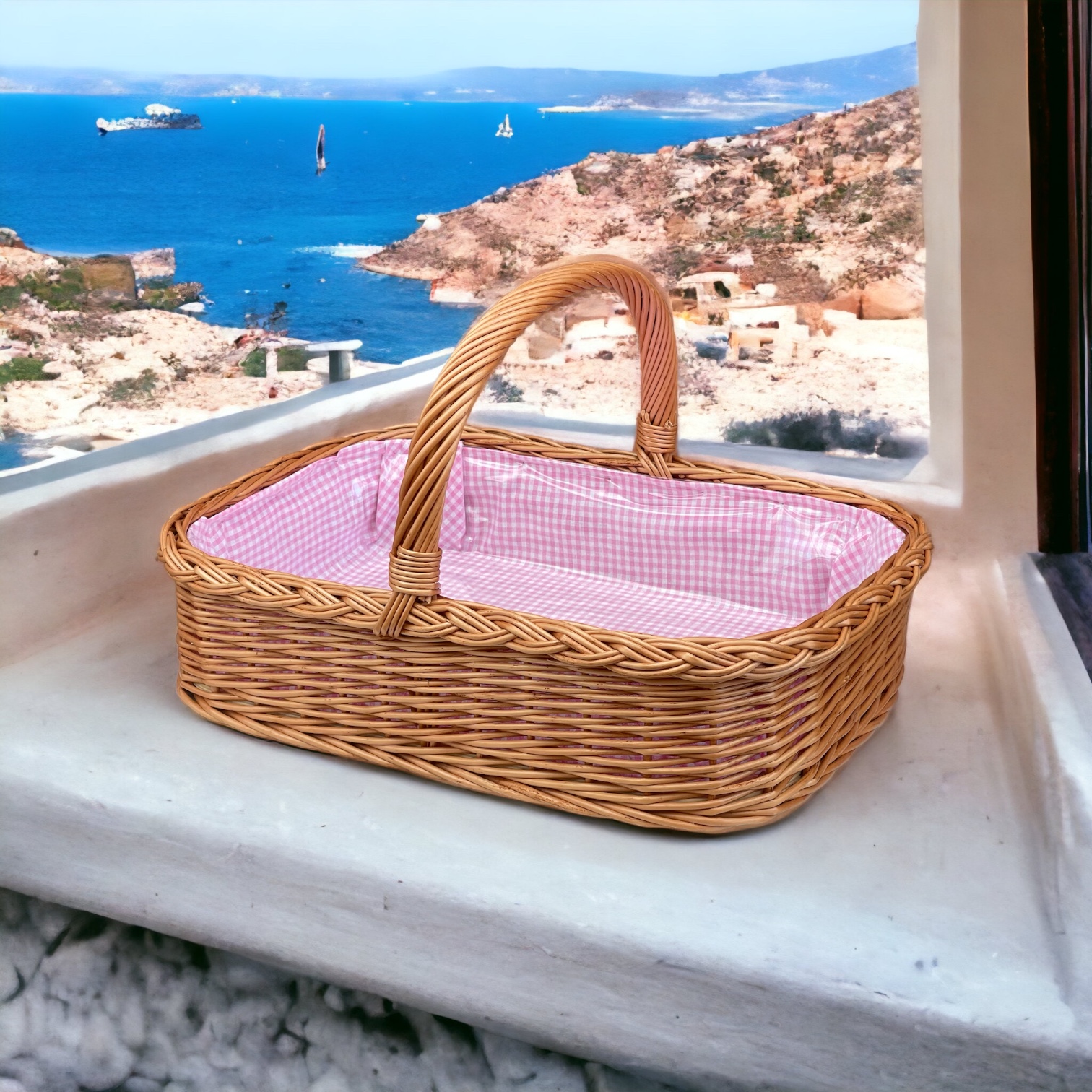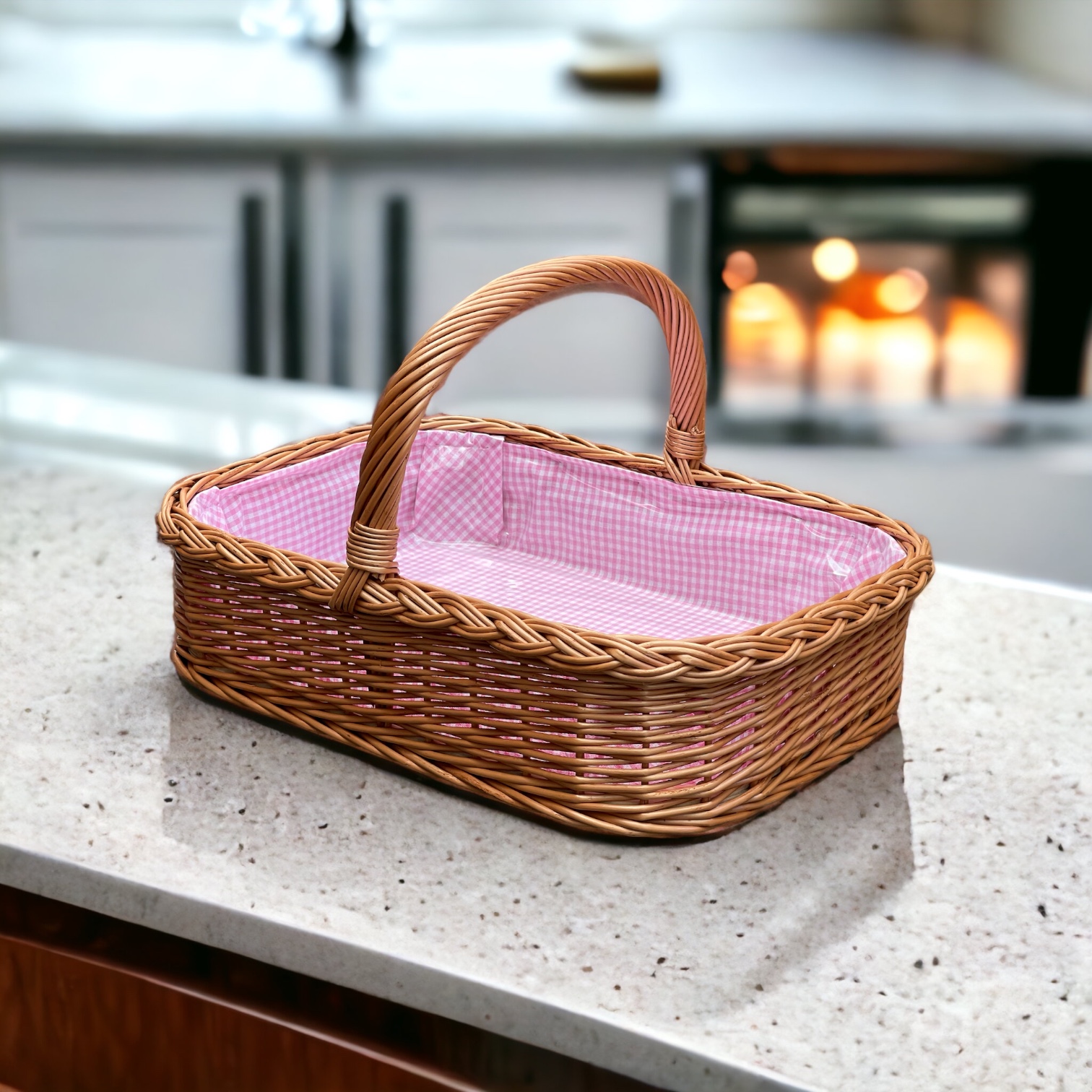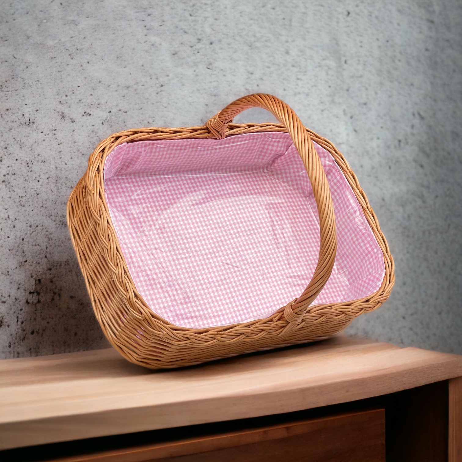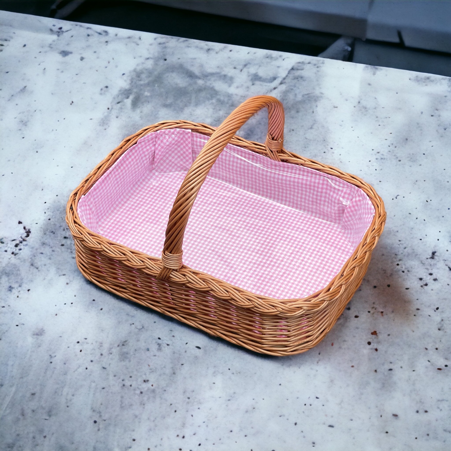 Bukora® Korbtablett aus Weide mit Futter Rosa fein kariert