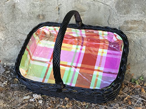 Tablett aus Weide.Schwarz lackiert.mit Futter Bunt kariert