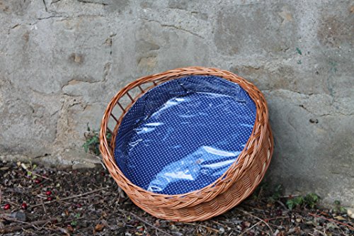 Bukora@ Tablett aus Weide mit Futter Blau mit weißen Punkten 43 cm rund