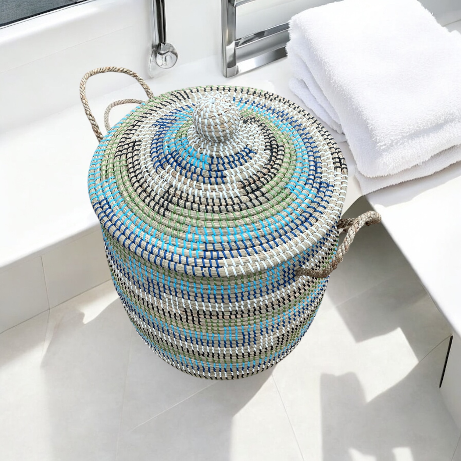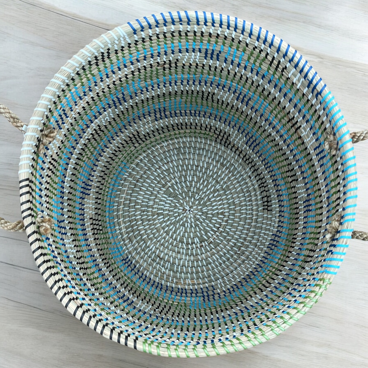 Wäschekorb aus Stroh Afrika Design Muster Blau